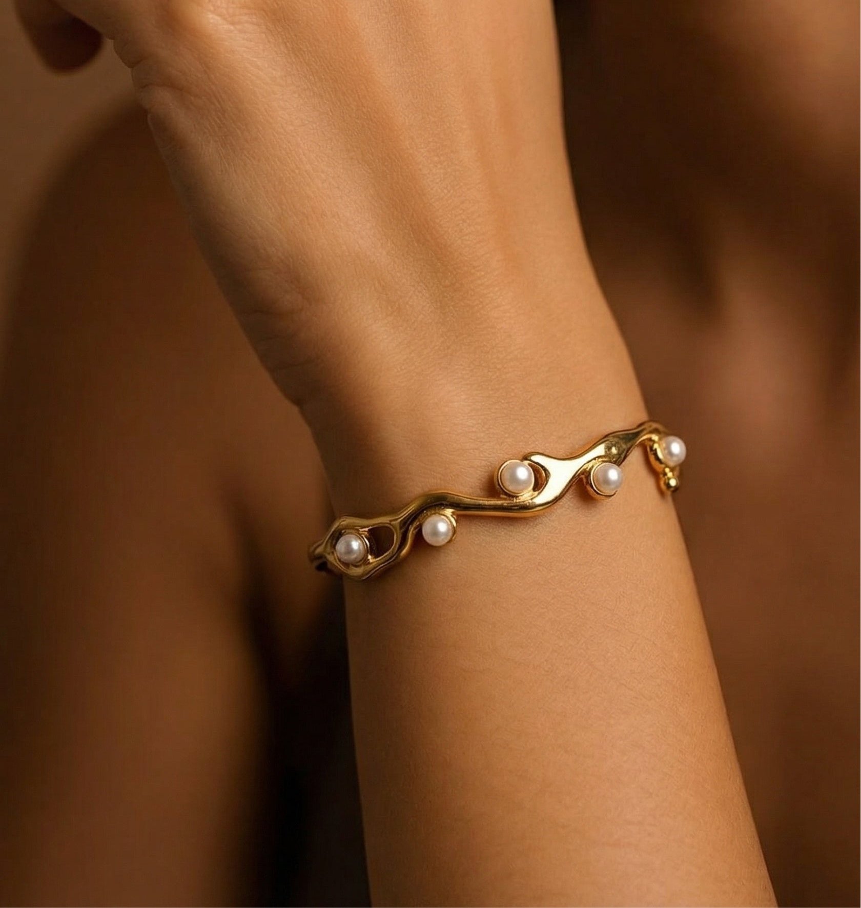 Pearla Wave Bracelet – Gold-Plated Pearl Cuff