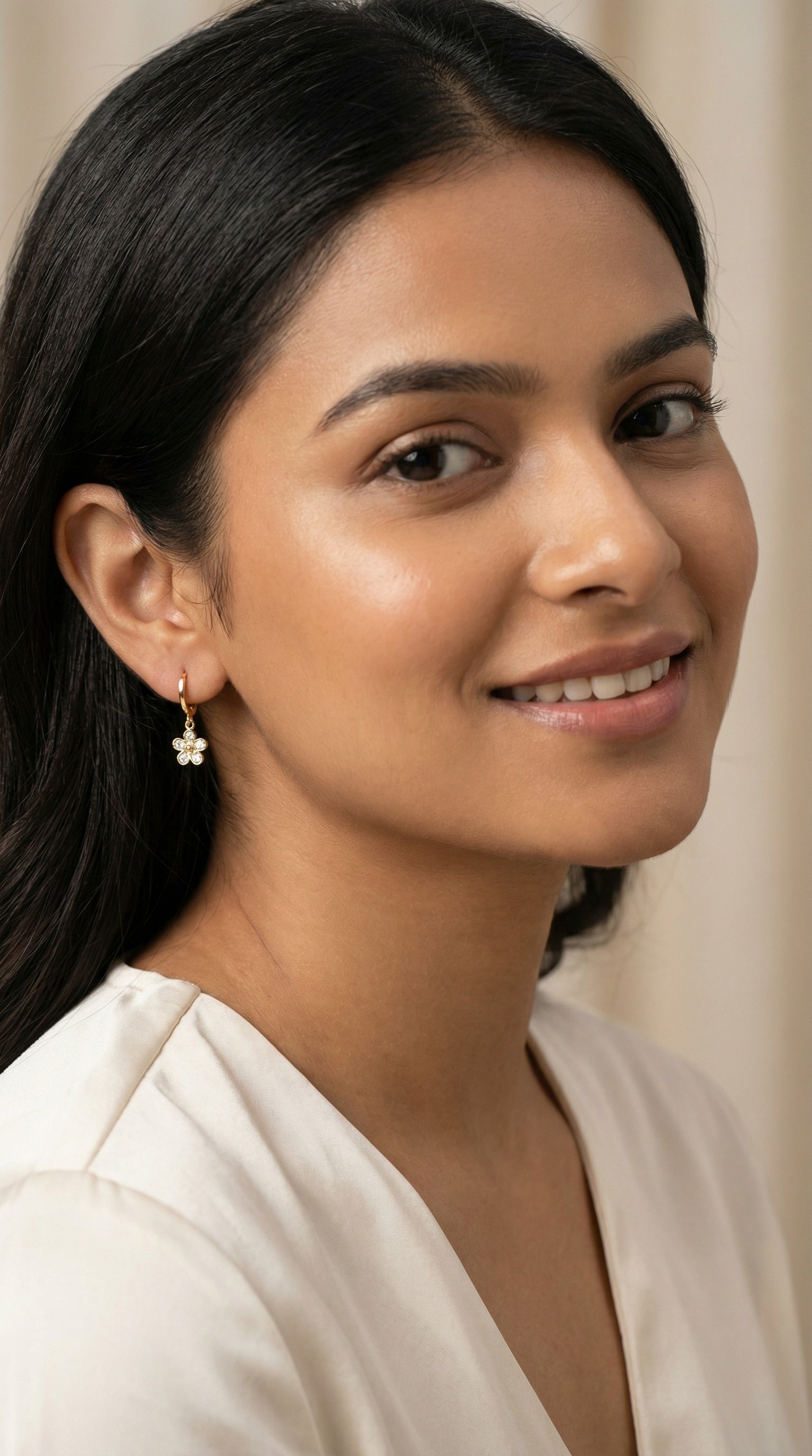 Product Description     Delicate, feminine, and effortlessly elegant — the Bloom Drop Hoop Earrings are designed to add a soft sparkle to your everyday...
