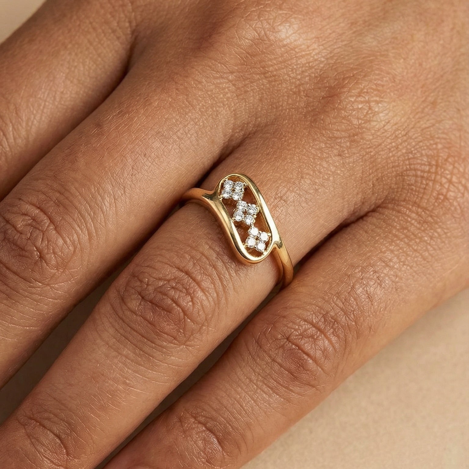 Soft curves meet subtle sparkle ✨ The Celeste Curve Ring is designed for women who love understated luxury. Featuring a sleek open-oval silhouette with delicately placed...
