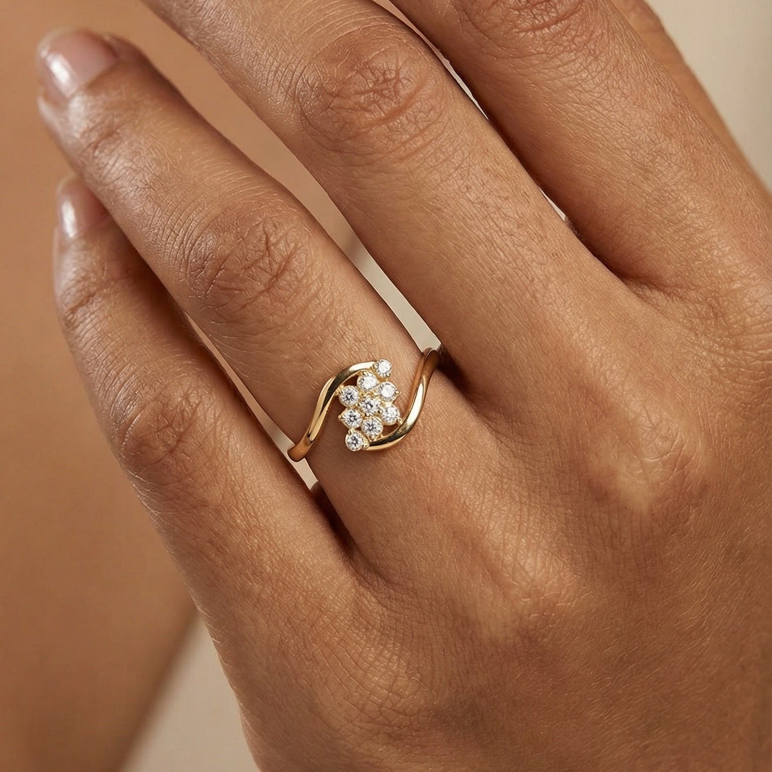 Delicate, radiant, and beautifully balanced ✨ The Aurielle Bloom Ring features a graceful open-band design adorned with a subtle cluster of shimmering crystals—crafted to catch the...