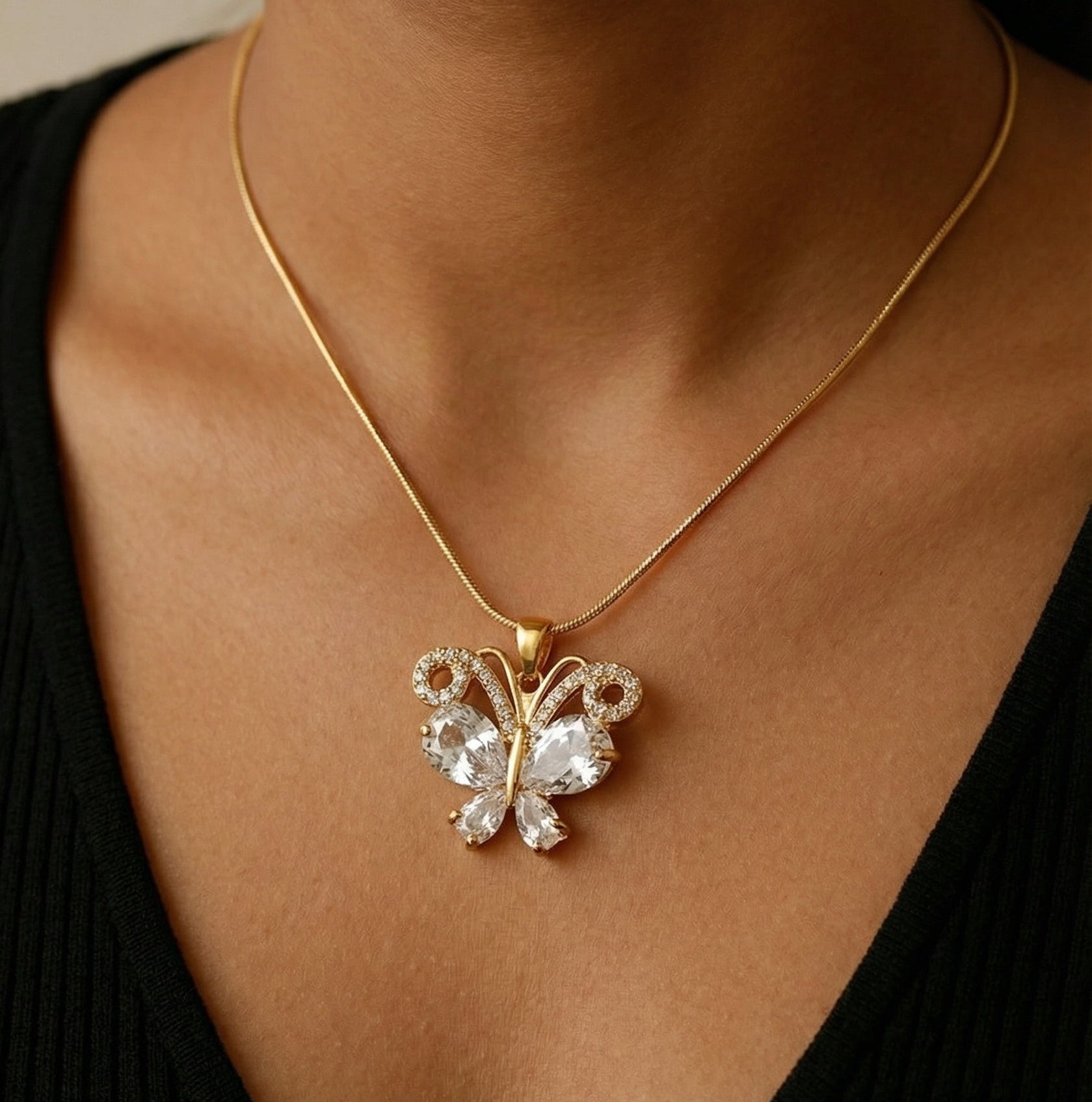 Bold yet graceful, the Crystal Butterfly Pendant Necklace is designed to stand out. Featuring a beautifully crafted butterfly motif adorned with high-shine crystals, this necklace blends...