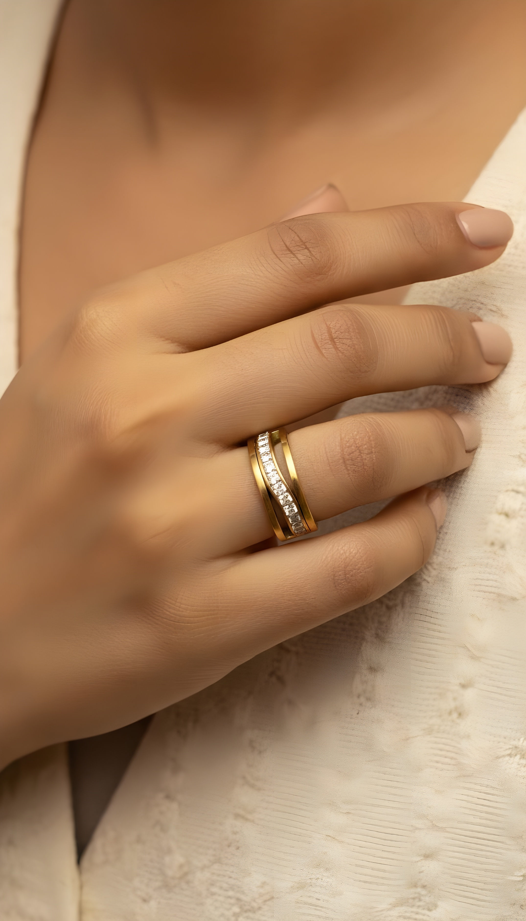 A timeless stack-look ring crafted to elevate your everyday style.   Meet your new favourite—our Three-Tone Love Ring, designed with a luxury finish and a modern,...