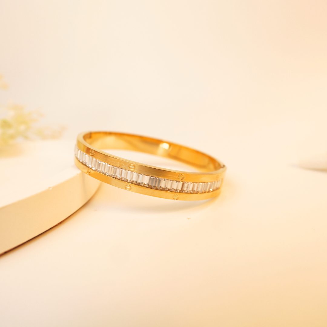 Regular price Rs. 1,199.00Sale price Rs. 1,199.00 Regular price Rs. 1,899.00Unit price perThe Ashara Glint Bangle is the definition of understated luxury. Adorned with a full row of baguette-cut CZ crystals, it’s designed to catch light — and...