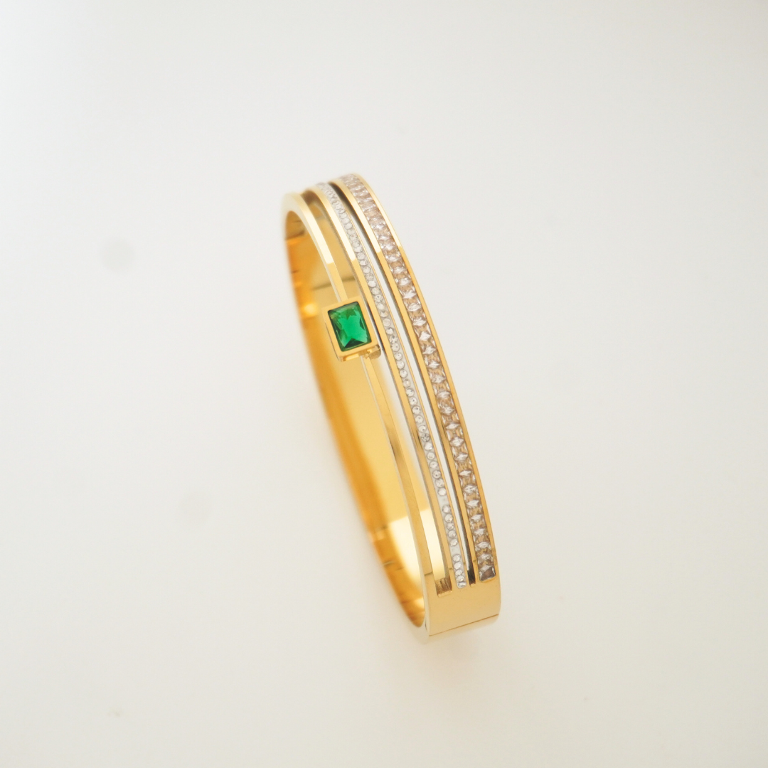 Emerald Stripe Bangle | Gold-Plated Modern Stone Bangle – Ashara Jewels
