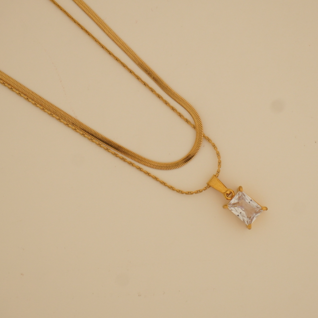 Regular price Rs. 1,199.00Sale price Rs. 1,199.00 Regular price Rs. 1,999.00Unit price perDescription: Delicate. Dazzling. Daily. The CrystalMuse Pendant Necklace features a radiant princess-cut clear crystal, set in a minimalist four-prong gold bezel. Paired with a double-layered...