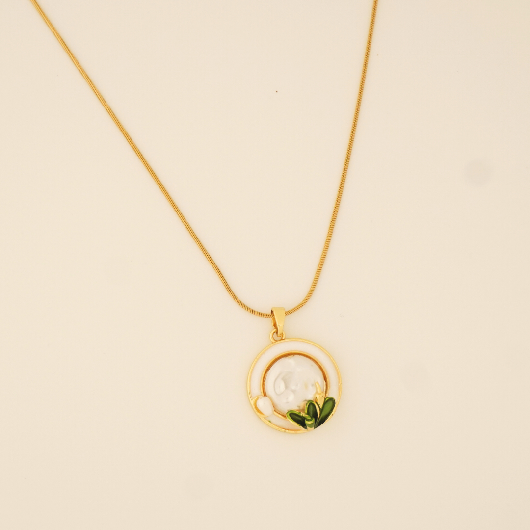 Ashara Mint Bloom Pendant – 18K Gold-Plated