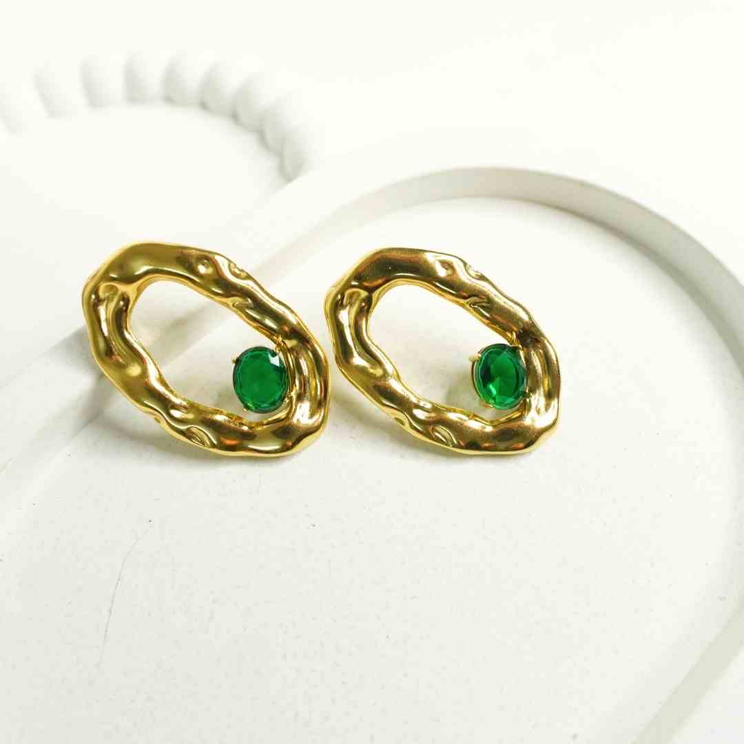 Regular price Rs. 999.00Sale price Rs. 999.00 Regular price Rs. 1,799.00Unit price perProduct Description Make a statement with our Molten Gold Emerald Oval Earrings, designed for the modern woman who loves to stand out. Crafted...