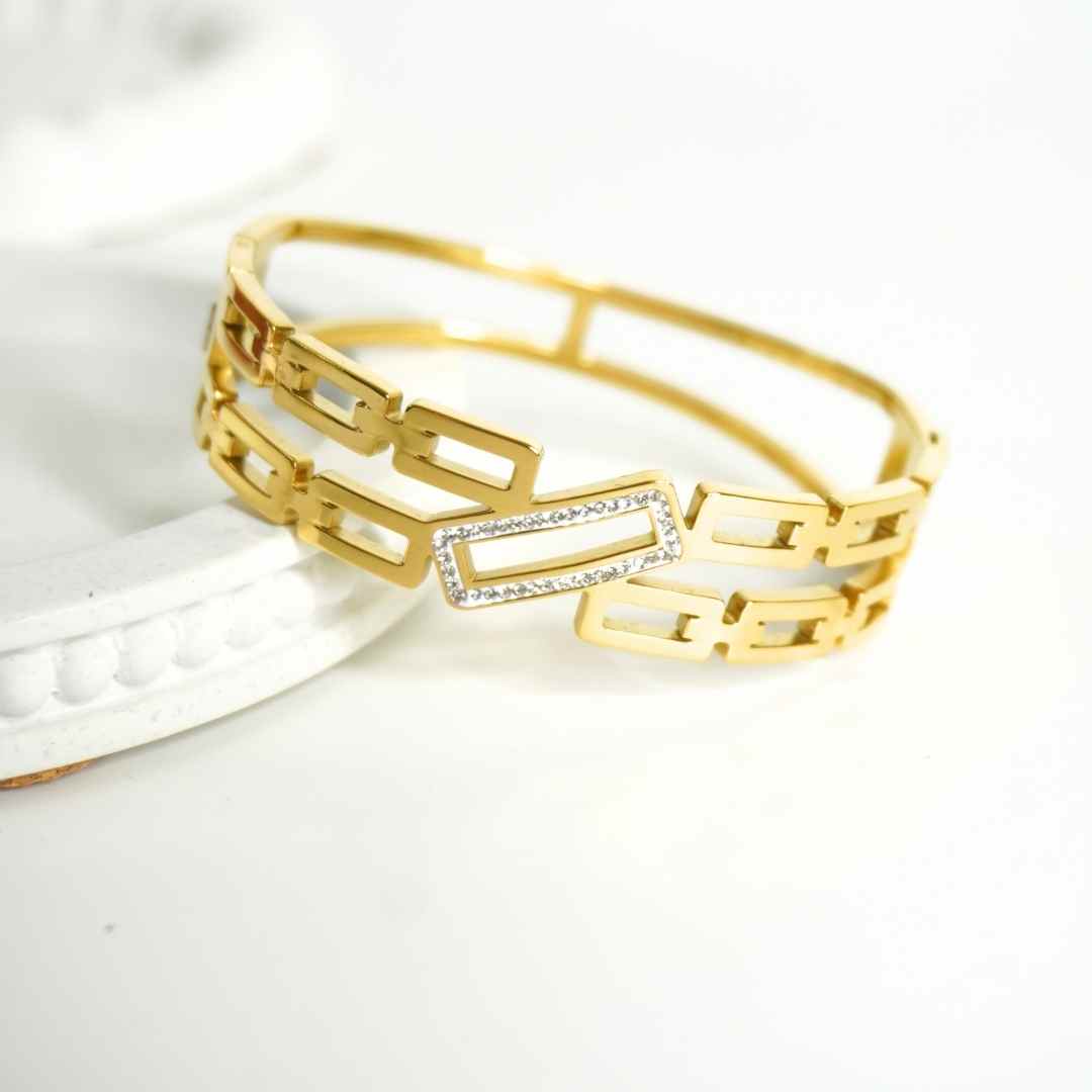 Regular price Rs. 1,199.00Sale price Rs. 1,199.00 Regular price Rs. 1,999.00Unit price perDescription: Sleek, modern, and radiant — the Aurora Geometric Crystal Cuff Bangle is a statement piece designed for the bold and stylish. Crafted in...