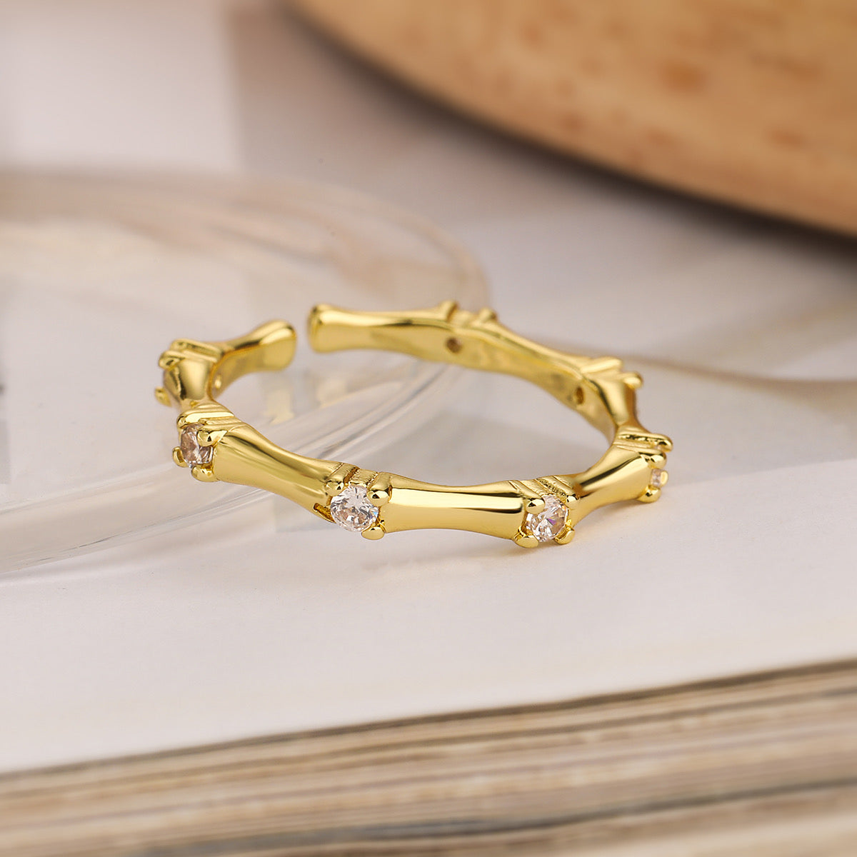 Regular price Rs. 899.00Sale price Rs. 899.00 Regular price Rs. 1,799.00Unit price / perInspired by the effortless elegance of natural bamboo forms, the Élan Bambù Adjustable Ring blends sculptural design with refined sparkle. Featuring a fluid open-band silhouette accented...