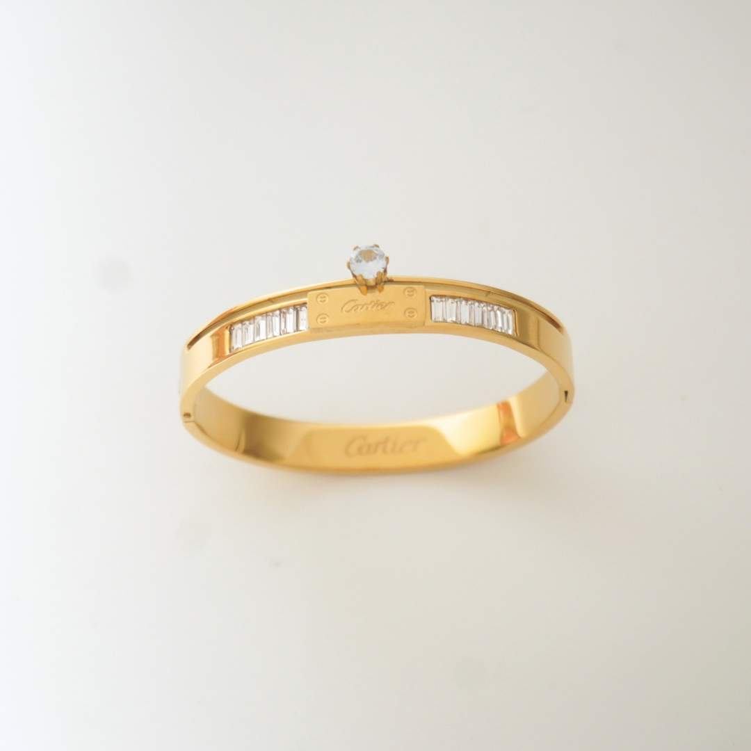 Crown Solitaire Bangle | 18K Gold-Plated Waterproof Statement Bracelet – Tiny Wrist