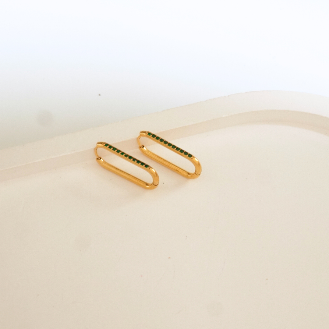 Regular price Rs. 899.00Sale price Rs. 899.00 Regular price Rs. 1,599.00Unit price perDescription: Redefining modern chic — the Emerald Elongate Hoops are designed for clean lines and quiet luxury. With their elongated oval silhouette and a fine row of...