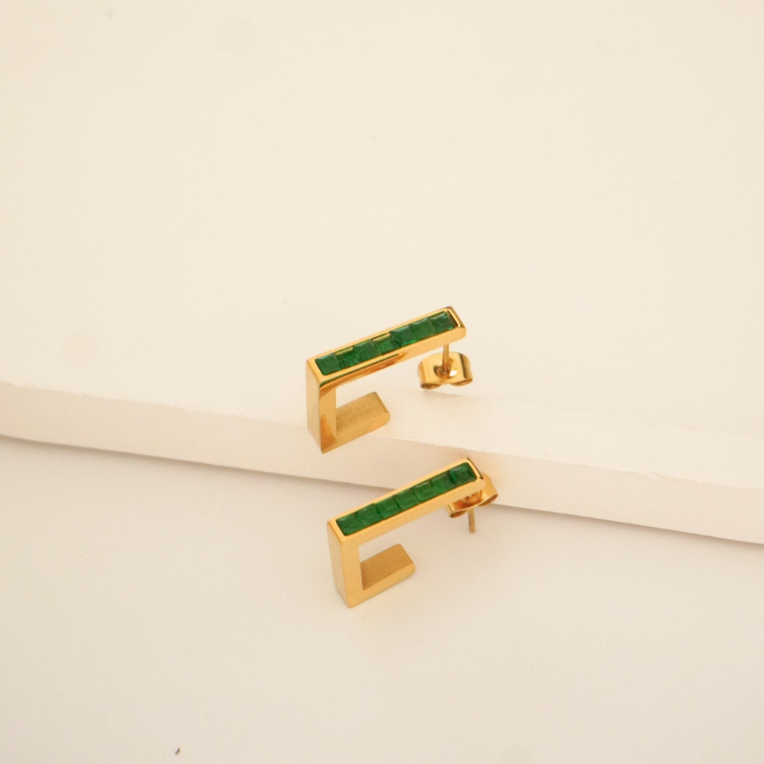 Regular price Rs. 899.00Sale price Rs. 899.00 Regular price Rs. 1,599.00Unit price perDescription: Sleek and striking — the Verdant Edge Drops are a refreshing take on modern minimalism. Crafted in 18K gold-plated stainless steel, these rectangular drop...