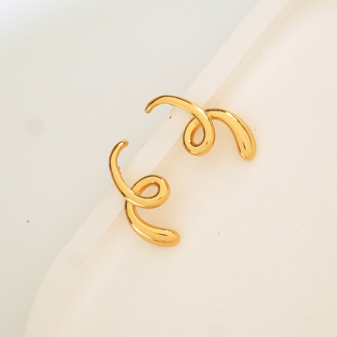 Swirl Muse Sculptural Hoop Earrings – 18K Gold Plated | Ashara Jewels