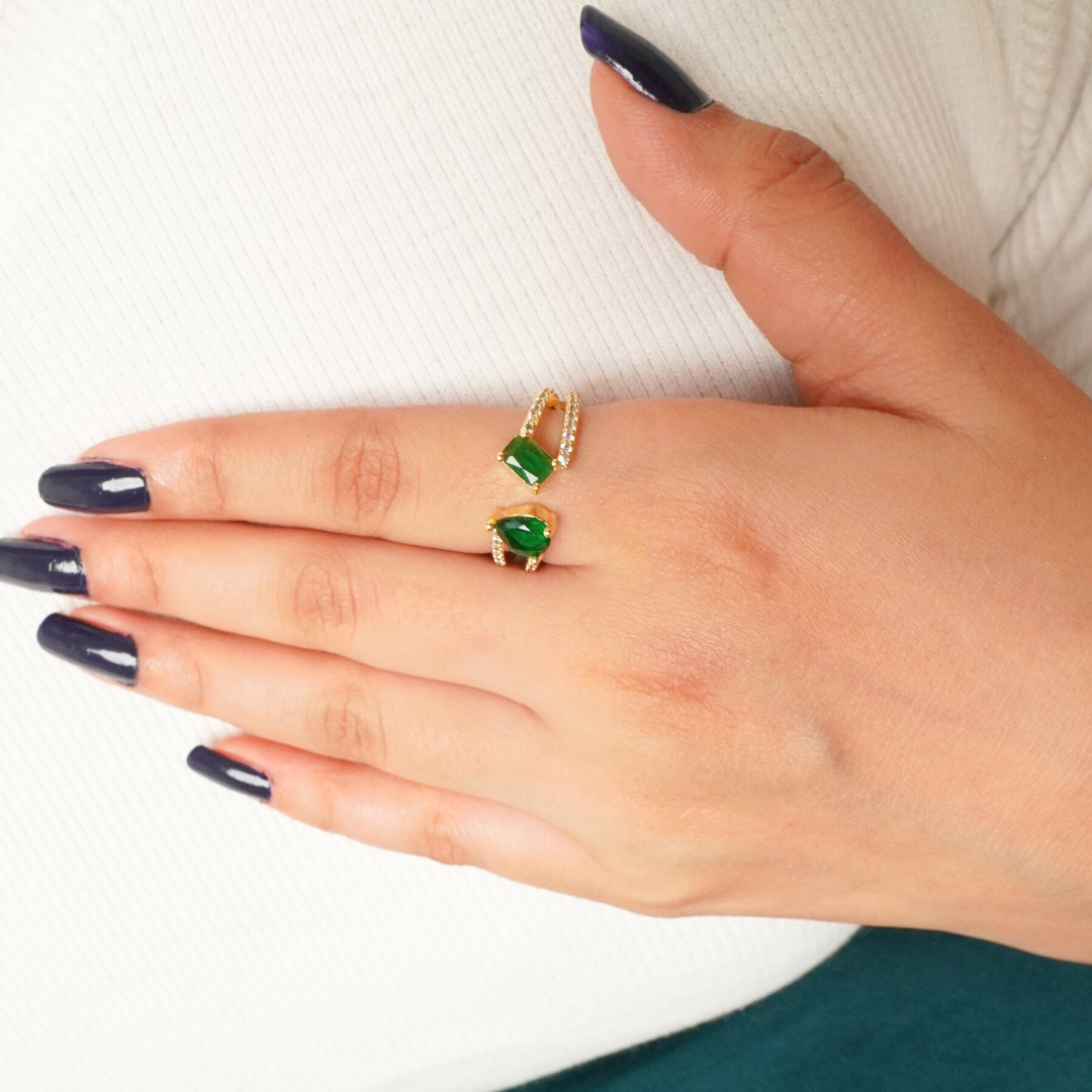 Emerald Dual Shine Adjustable Ring
