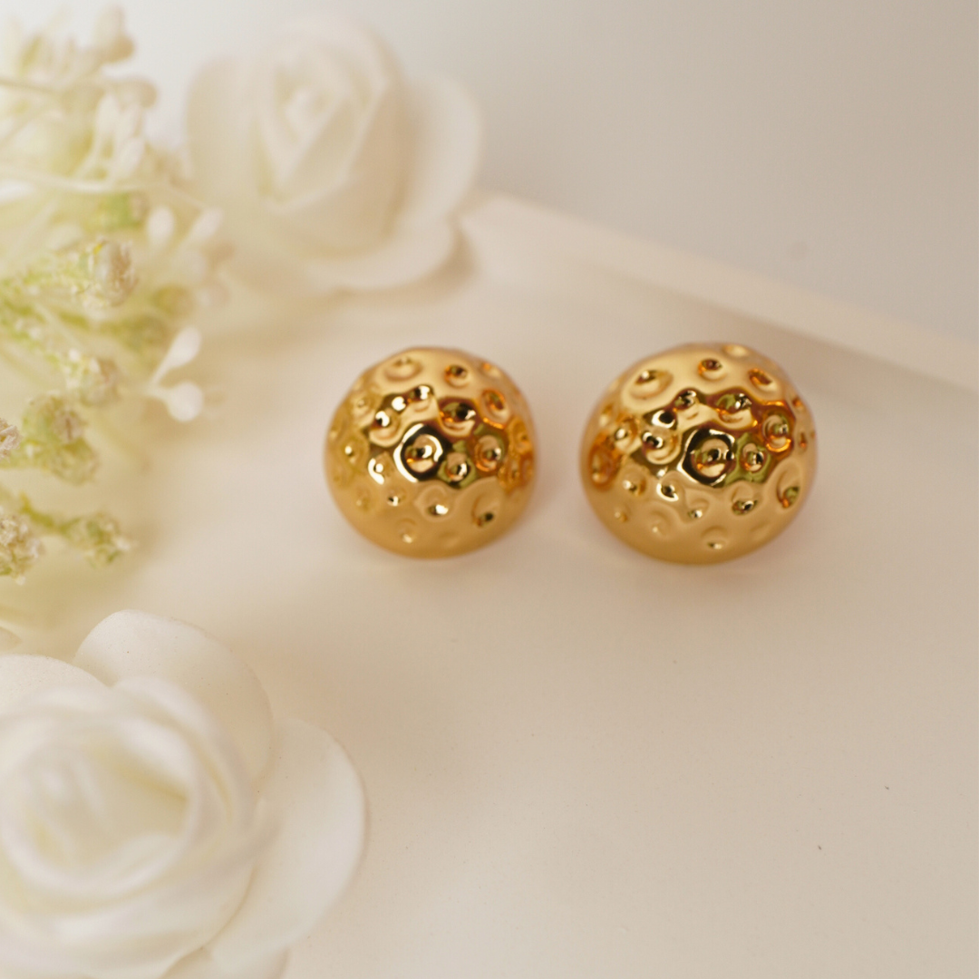 Designed to dazzle, the Ashara Lunar Lux Studs are a celestial dream for your jewelry box. Crafted in a radiant 18k gold-tone dome silhouette and encrusted with a playful scatter of multicolored crystals, these studs are your shortcut to effortless glam.