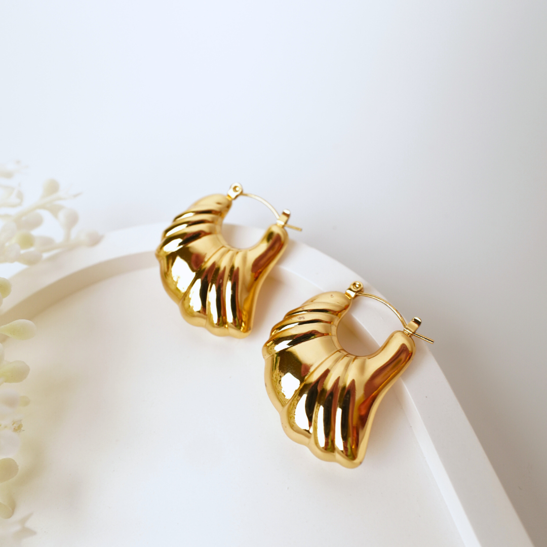 Meet the Ashara Solar Flare Hoops — radiant statement earrings that mirror the fierce energy of the sun. These sculptural hoops are crafted in 18K gold-plated stainless steel, shaped with dynamic ridges that catch the light from every angle.
