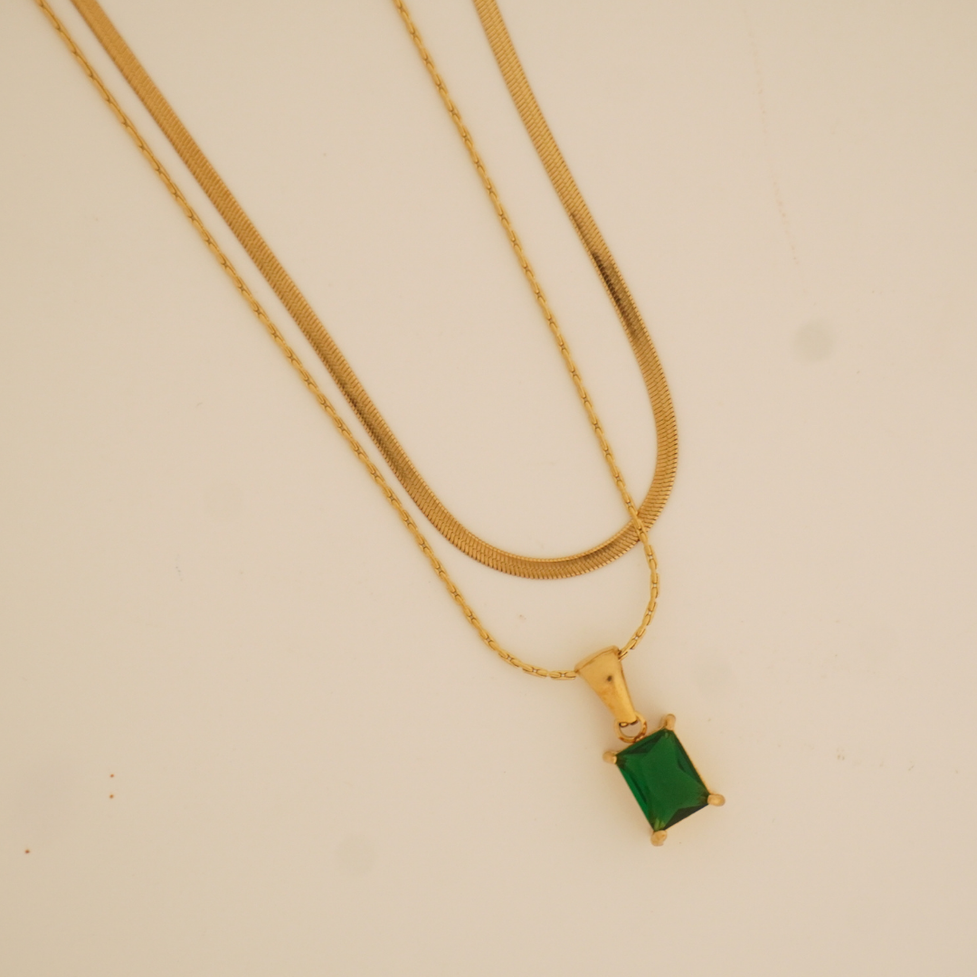 EmeraldMuse Pendant Necklace – Green Stone Gold-Plated Stainless Steel Chain | Ashara Jewels