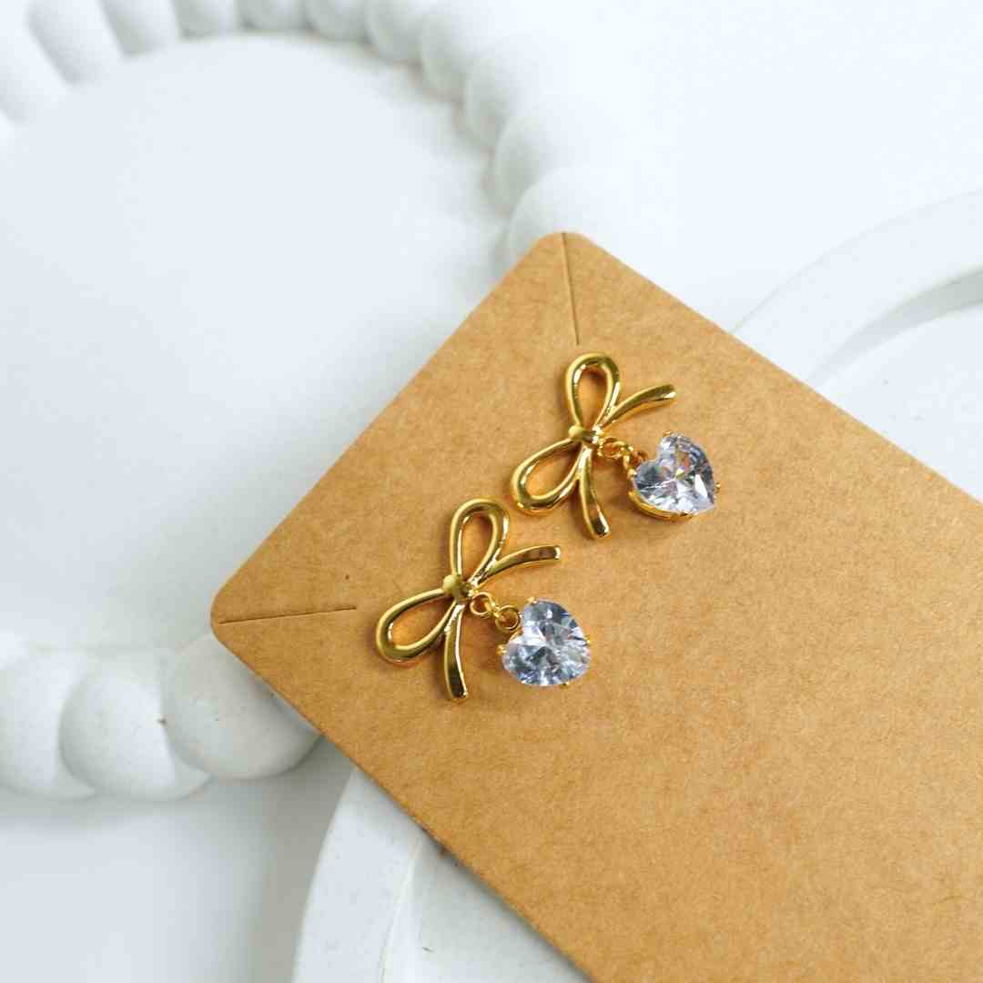Golden Bow Solitaire Drop Earrings