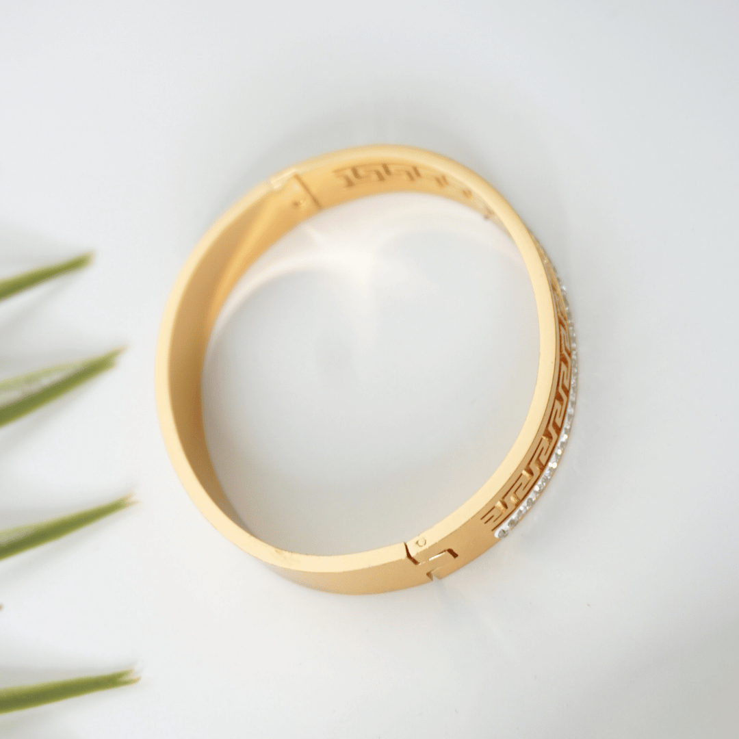 Channel timeless elegance with the Helena Greek Key Crystal Bangle Bracelet by Ashara Jewels.