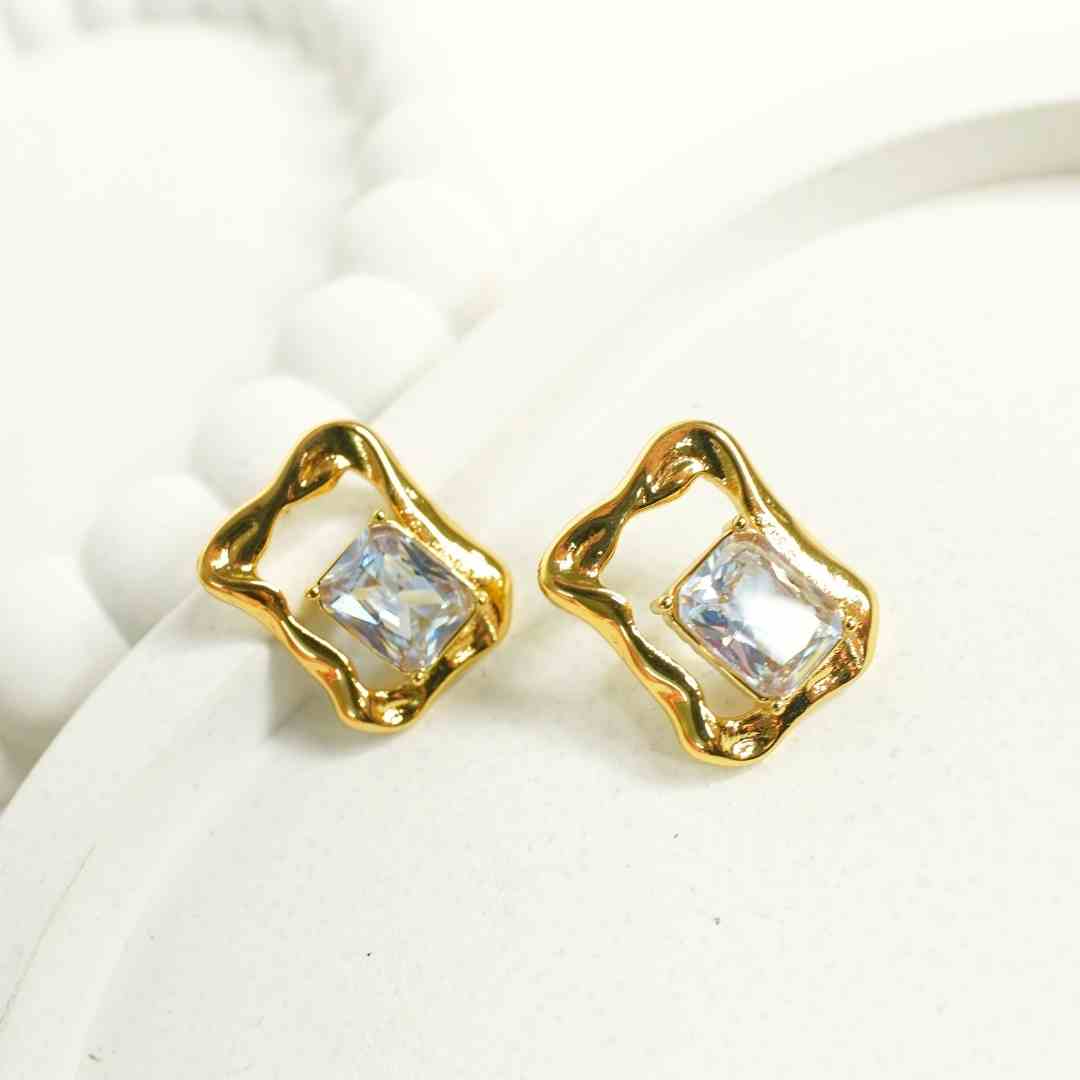 Step into modern luxury with our Molten Gold Crystal Frame Earrings. Featuring a unique molten-textured rectangular frame and a sparkling clear crystal centerpiece, these earrings are equal parts bold and elegant. Their sculptural design makes them a standout piece, while the classic crystal keeps them versatile for day-to-night wear.