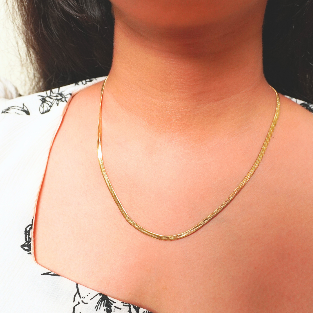 Minimal, polished, and effortlessly bold — our Sleek Snake Chain Necklace is a timeless essential for your everyday layering game. Crafted with precision and dipped in 18k gold, this slinky stunner drapes like liquid gold and moves with you. Wear it solo for a subtle shine or stack it up for a statement look.